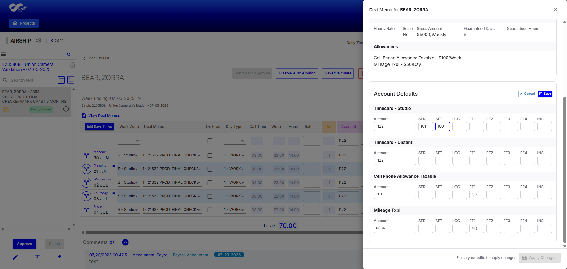 Allowance Cap Tracking in Hours+: Payroll Accountants can now track allowance caps with a new Hours+ widget that displays all payments across Hours+ and non-Hours+ timecards, automatically populates caps entered in Start+, and allows manual updates for future deals (Learn more)